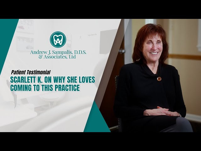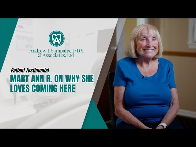 Mary Ann R. on why she loves coming here I was first recommended to Dr. Sampalis and I was told that he was very studious and that he worked very hard in school and he’s used all of his education on me throughout the years and if it wasn’t for Dr. Sampalis I wouldn’t have a smile and I wouldn’t be able to chew and I just he’s been a he’s such a dedicated man. The atmosphere at Dr. Sampalis is it’s like family here. Everybody takes care of you. You call up. They greet you. They’re very friendly. They we talk back and forth. I probably talk a little bit too much if I want to get me out the door but they’re just they always take the time with you. Coming to Dr. Sampalis has been a wonderful experience. He’s so compassionate and so kind and so observant that he really just kind of walks you through getting an implant or other sophisticated dental work.